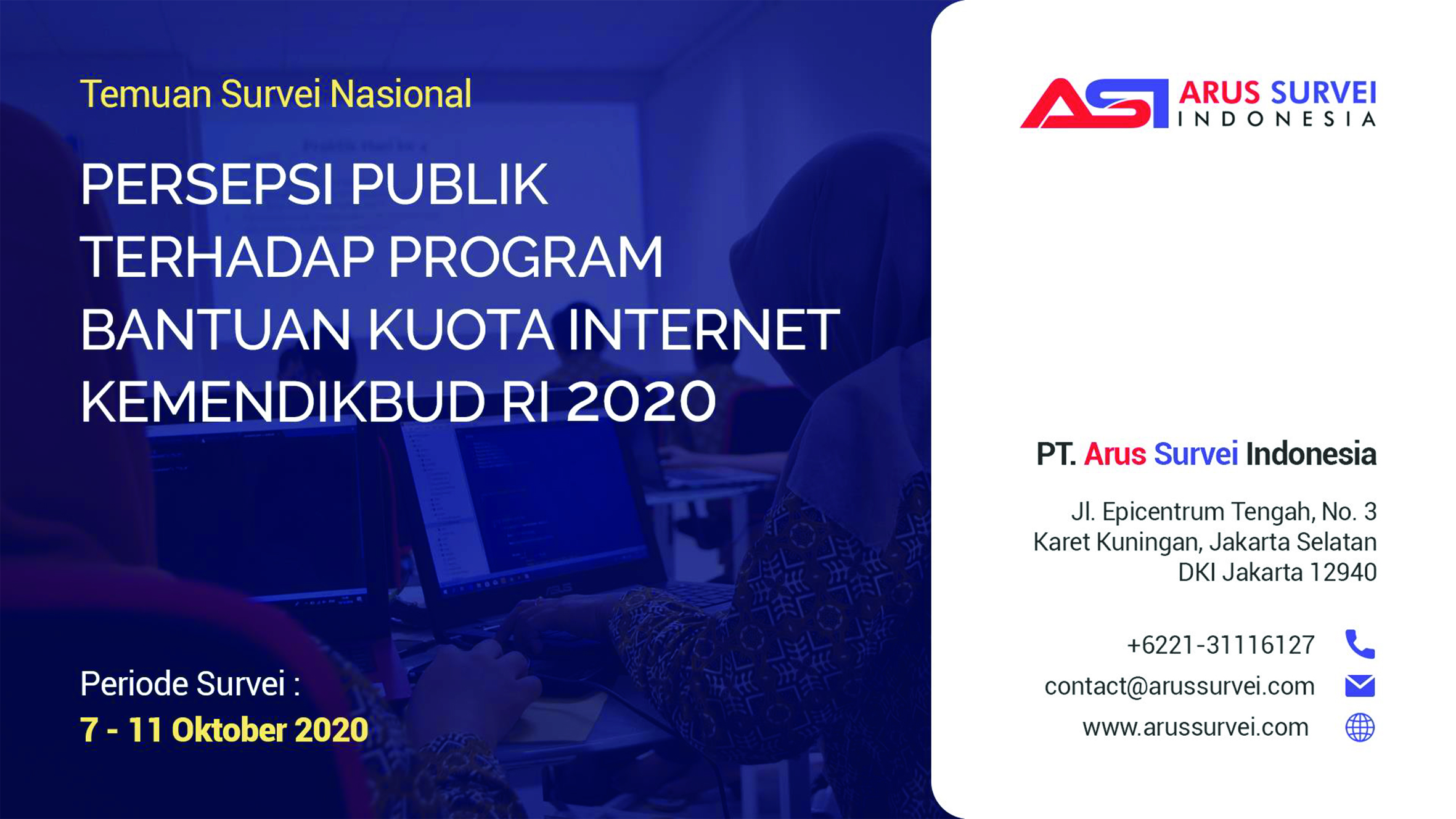 Lembaga Arus Survei Indonesia (ASI) merilis hasil survei Persepsi Publik terhadap Program Bantuan Kuota Internet Kementerian Pendidikan dan Kebudayaan (Kemendikbud) Tahun 2020.